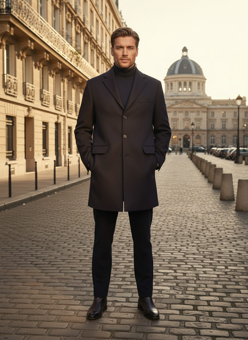 Dans style urbain et moderne, ce pardessus Marine est un must have de notre gamme.